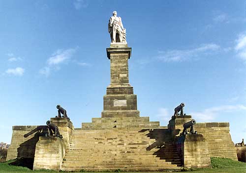 The Lord Admiral Collingwood monument facing on to the river Tyne. He was second in command to Nelson in the battle of Trafalgar.